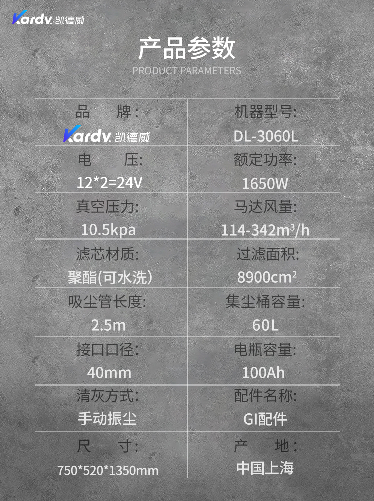 凱德威電瓶式吸塵器鋰電池工業吸塵器DL-3060L